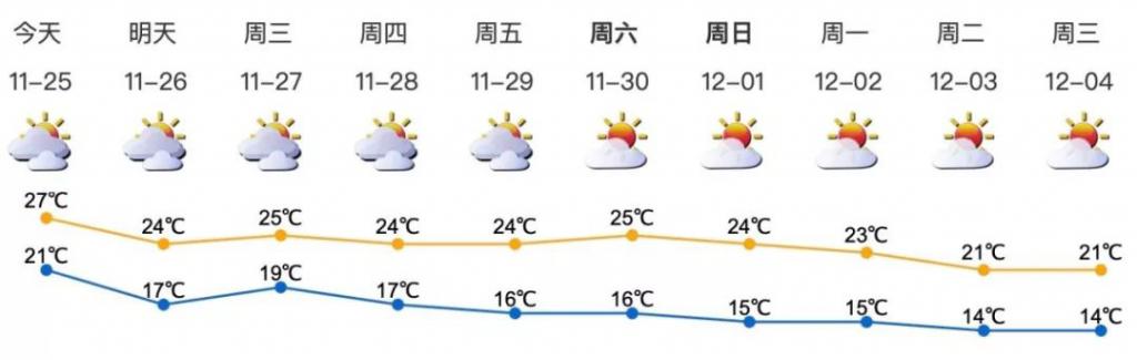 11月24日,深圳大部分地區(qū)最高氣溫在28-29 ℃,有8個站點破了"3"字頭(這熟悉的黃色圖……)