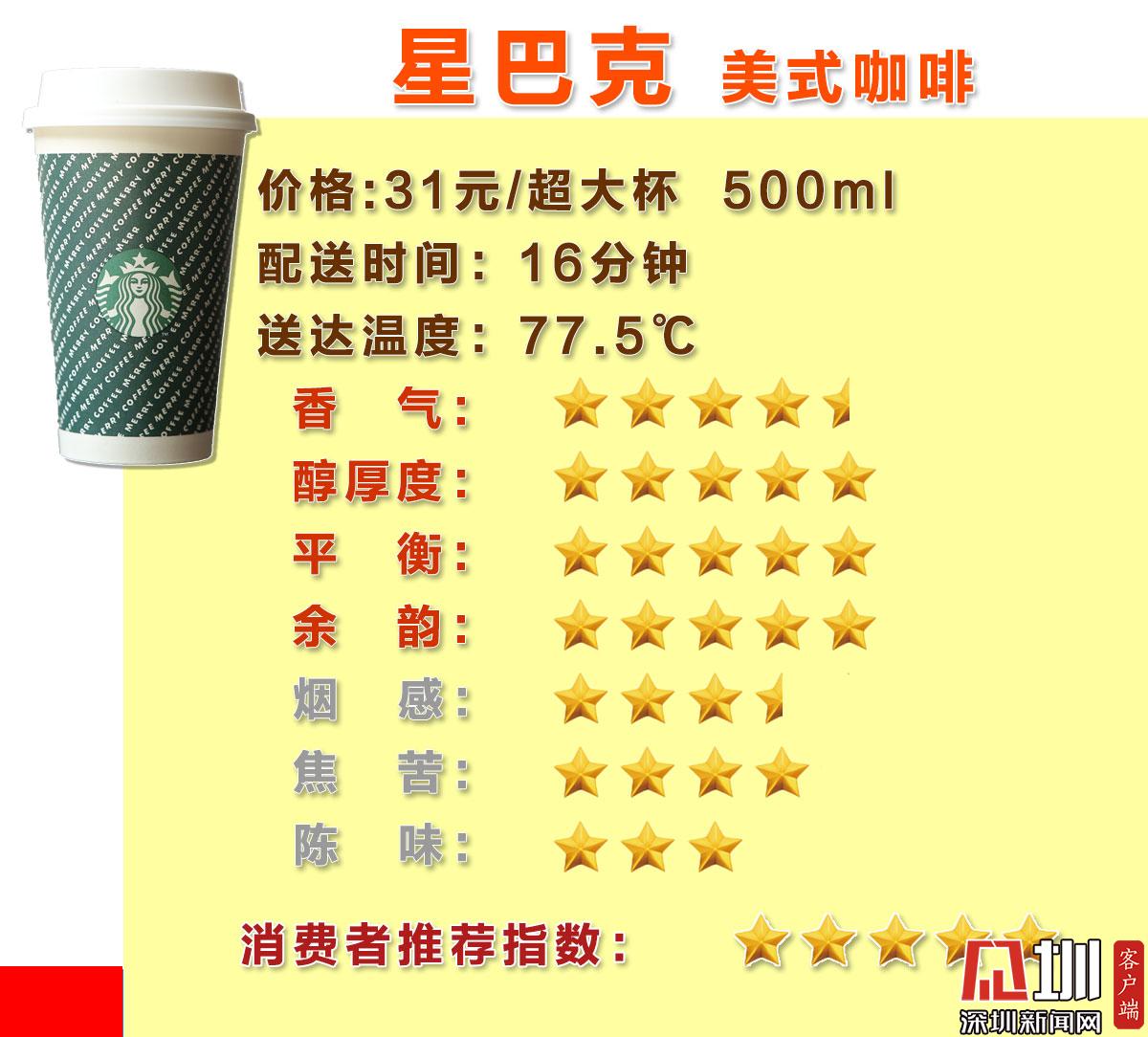 在客觀評(píng)測(cè)環(huán)節(jié),測(cè)評(píng)小組同樣圍繞咖啡單價(jià)、容積、配送時(shí)間、溫度、包裝等5個(gè)維度對(duì)四款品牌的“美式(熱)”咖啡進(jìn)行了測(cè)評(píng)。