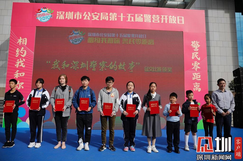 獲得“我和深圳警察的故事”征文比賽其他獎項的小朋友們上臺領(lǐng)獎。