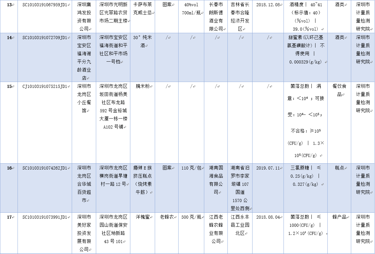 見圳客戶端·深圳新聞網(wǎng)2019年12月2日訊 為保障深圳食品消費安全,深圳市市場監(jiān)督管理局于2019年8-9月組織對生產(chǎn)、流通、餐飲環(huán)節(jié)的食品開展了專項抽樣檢驗工作。