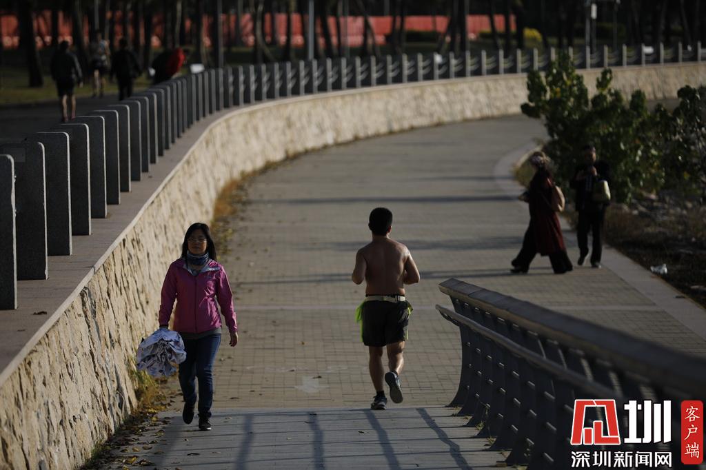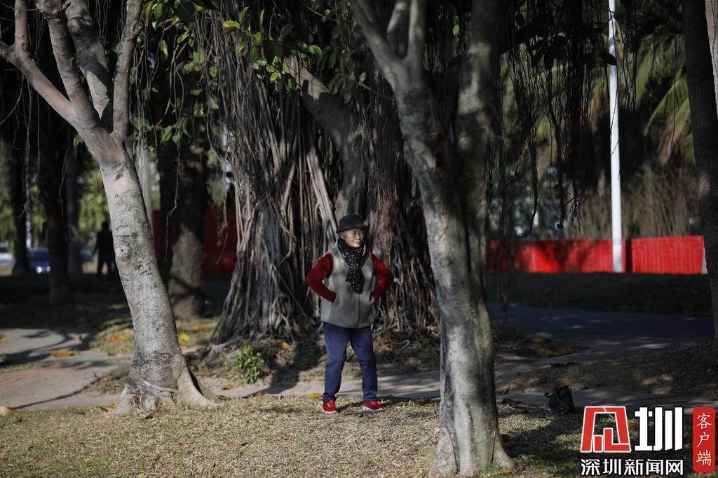 深圳南山區(qū),出行的小朋友穿上冬裝御寒。