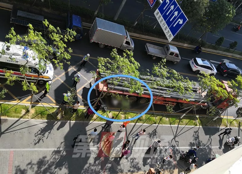 騎車女子被大型拖掛車卷入車輪底