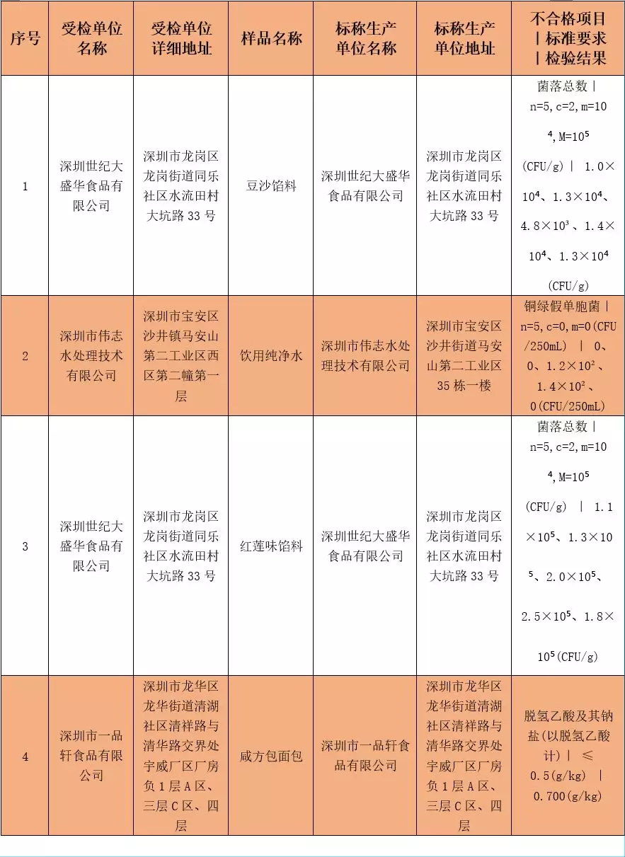 另有1批次咸方包面包不合格,不合格項目為脫氫乙酸及其鈉鹽。