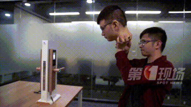 工程師事先已將自己的面部信息錄入門禁系統(tǒng),現(xiàn)在我們用這個(gè)3D頭模來開門試試。