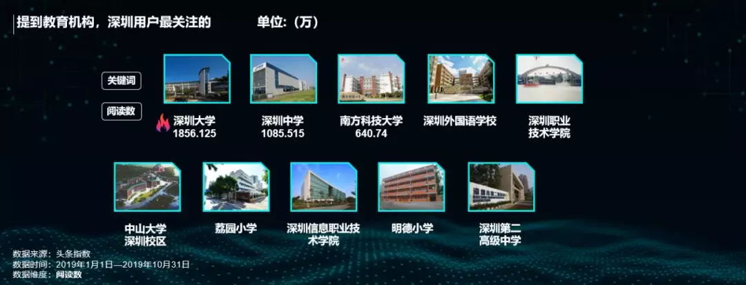 數(shù)據(jù)顯示,深圳大學(xué)、深圳中學(xué)和南方科技大學(xué)這三所教育機構(gòu)最受深圳網(wǎng)友關(guān)注。今年深圳在補齊教育短板上的力度繼續(xù)加大,尤其是在《意見》支持深圳在教育體制改革方面先行先試,高標準辦好學(xué)前教育,擴大中小學(xué)教育規(guī)模,高質(zhì)量普及高中階段教育,充分落實高等學(xué)校辦學(xué)自主權(quán),加快創(chuàng)建一流大學(xué)和一流學(xué)科,打造現(xiàn)代職業(yè)教育體系后,深圳教育的進步發(fā)展,未來可期。