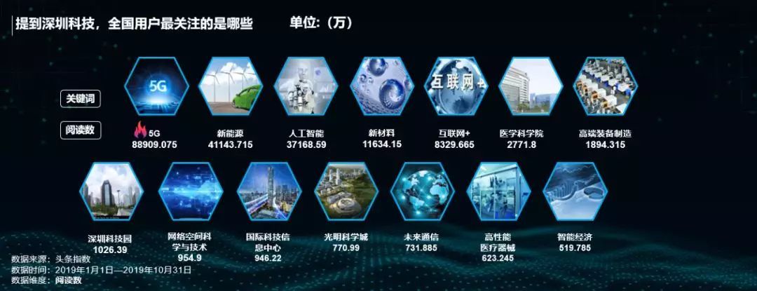 2019年是我國5G商用元年,深圳更是被列入首批5G城市名單,加之因華為的存在,深圳在5G研發(fā)及應(yīng)用上領(lǐng)先全球,備受關(guān)注。5G同時還是提到深圳科技時,最受全國網(wǎng)友最關(guān)注的關(guān)鍵詞。