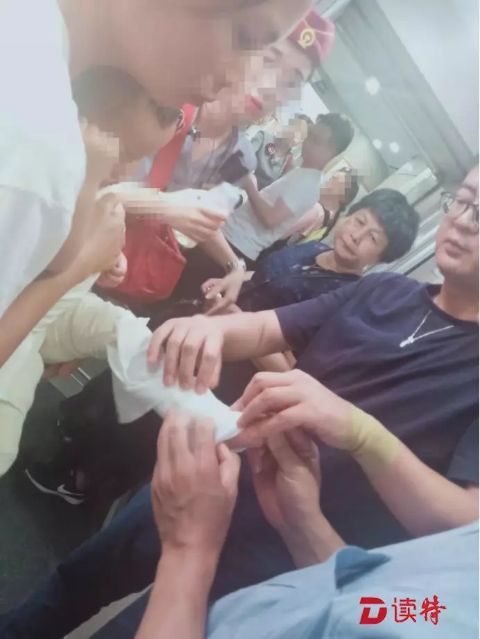 黃謙醫(yī)生查看了患兒傷口,初步判斷為深二度燒傷,于是迅速組織該院同行的醫(yī)護人員用冷水為傷口降溫,再用毛巾包扎傷口,防止感染。患兒的疼痛感馬上減輕,停止了哭鬧。他又找到乘務(wù)員為患兒準(zhǔn)備鹽水,防止傷口滲液導(dǎo)致脫水,并囑咐家屬下車后及時到醫(yī)院治療。
