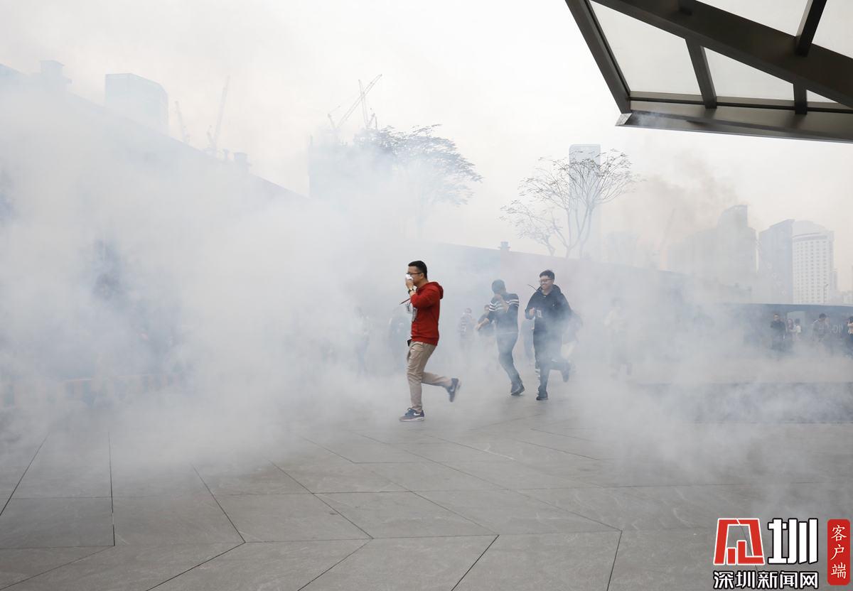 演練開始后,模擬中國華潤大廈24層因電氣線路發(fā)生短路,突發(fā)火災(zāi),火勢迅速蔓延。此時(shí)正值上班高峰期,樓內(nèi)有大量辦公人員需要疏散救助,情況十分緊急。“火災(zāi)”警報(bào)拉響后,大樓內(nèi)部的微型消防站和技術(shù)處置隊(duì)進(jìn)行先期處置。深圳市消防救援支隊(duì)同時(shí)快速調(diào)派特勤、南山、寶安、福田等大隊(duì)48輛消防車、230余名消防員到場處置,并聯(lián)動(dòng)應(yīng)急管理、交警、醫(yī)療、水務(wù)等部門到場協(xié)同處置。消防救援人員“逆行”深入起火建筑,疏散樓內(nèi)5200余名群眾,同時(shí)按照“以固為主,固移結(jié)合”的戰(zhàn)術(shù),利用水槍、水泡、滅火機(jī)器人、滅火無人機(jī)、舉高消防車、投彈式高層建筑干粉消防車等壓制火勢,最終成功將“大火”撲滅。