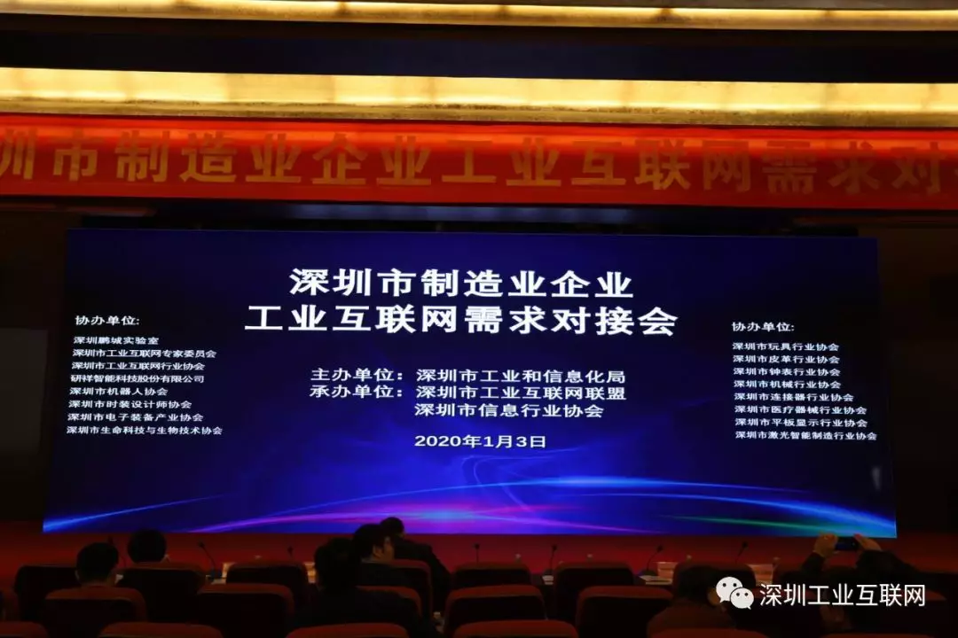 2020年1月3日,由深圳市工業(yè)和信息化局主辦,深圳市工業(yè)互聯(lián)網(wǎng)聯(lián)盟、深圳市信息行業(yè)協(xié)會(huì)承辦,深圳鵬城實(shí)驗(yàn)室、深圳市工業(yè)互聯(lián)網(wǎng)專家委員會(huì)、深圳市工業(yè)互聯(lián)網(wǎng)行業(yè)協(xié)會(huì)協(xié)辦的“深圳制造企業(yè)工業(yè)互聯(lián)網(wǎng)需求對(duì)接會(huì)”在研祥科技大廈圓滿舉行。來自40家深圳制造業(yè)企業(yè)、30家工業(yè)互聯(lián)網(wǎng)資源池服務(wù)商、13家行業(yè)協(xié)會(huì)及25位工業(yè)互聯(lián)網(wǎng)專家近200人出席會(huì)議。深圳市工業(yè)和信息化局局領(lǐng)導(dǎo)李鄭祥到會(huì)并講話,市工業(yè)和信息化局信息與軟件服務(wù)處處長江雪明致辭,寶區(qū)、龍華、龍崗等區(qū)工業(yè)和信息化局相關(guān)負(fù)責(zé)人出席本次對(duì)接會(huì)。