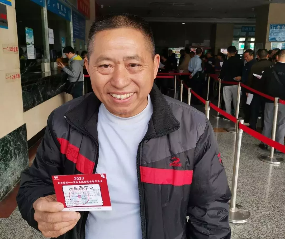來(lái)自四川省南充市的魏先生一大早便來(lái)到取票現(xiàn)場(chǎng),成功取到票的他,滿臉掛著笑容。據(jù)魏先生介紹,1992年他來(lái)深圳務(wù)工,平時(shí)靠打散工,收入不高,上次回家已經(jīng)是6年前了,他無(wú)比想念家里的老母親和三個(gè)小孩,無(wú)奈每年春節(jié)都搶不到票,今年,在老鄉(xiāng)的告知下得知深圳福彩這個(gè)公益活動(dòng),總算是買到了回家的車票?!拔也欢W(wǎng)絡(luò)買票,老鄉(xiāng)拿我的手機(jī)幫忙操作,今年終于可以回家了,很開(kāi)心!而且汽車直接送到家附近,不需要轉(zhuǎn)車,很方便,感謝福彩!”