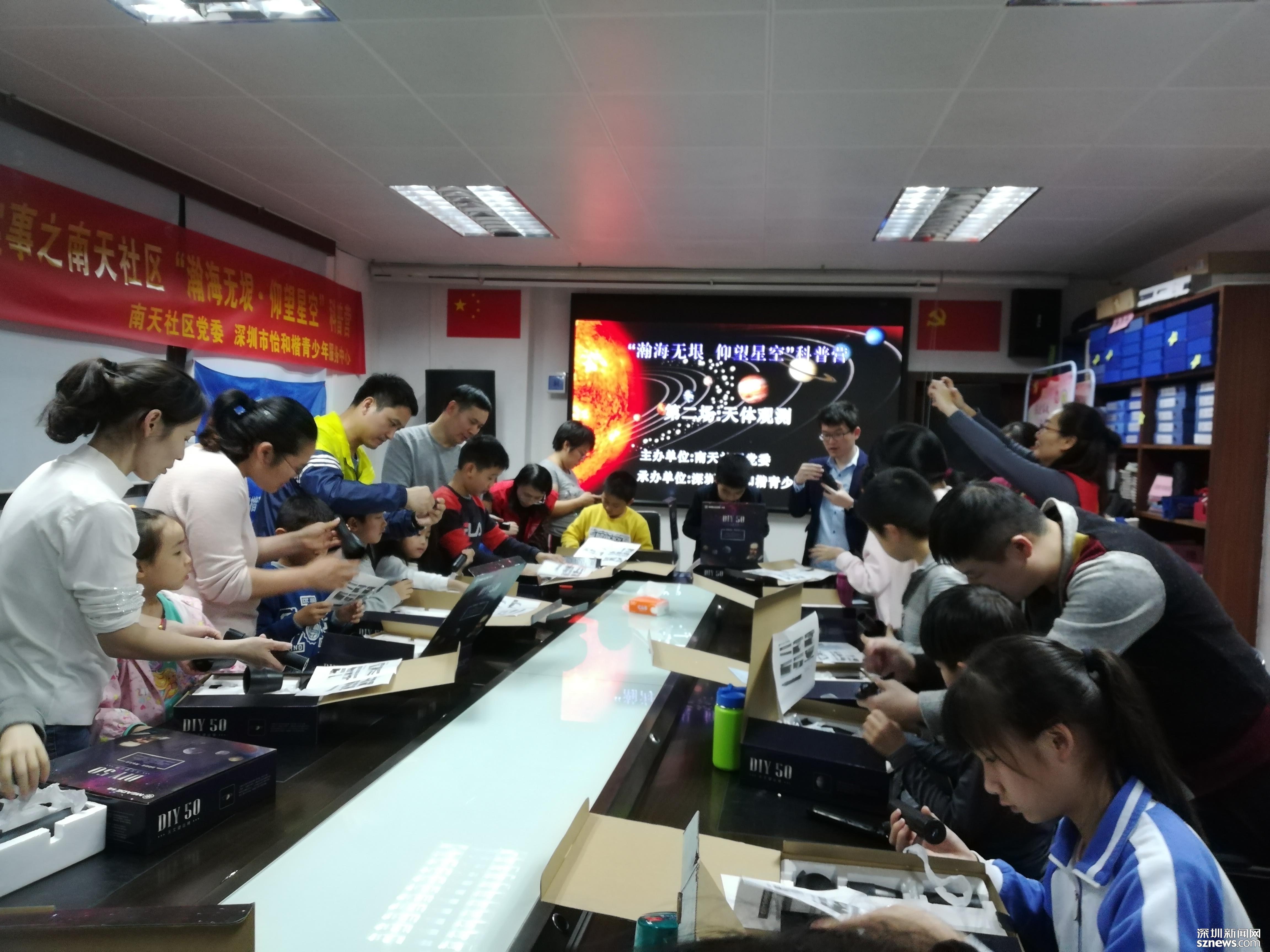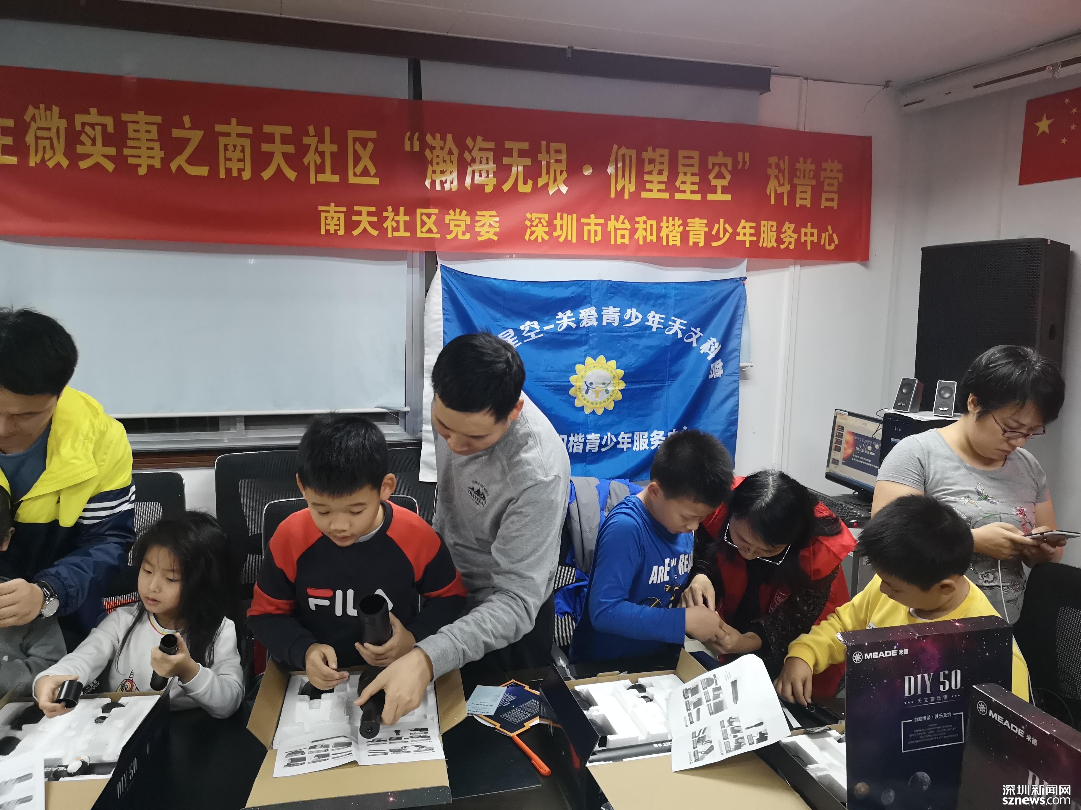 見(jiàn)圳客戶(hù)端、深圳新聞網(wǎng)2020年1月7日訊 為全面貫徹落實(shí)《全民科學(xué)素質(zhì)行動(dòng)計(jì)劃綱要》,提高福田區(qū)園嶺街道南天社區(qū)青少年科學(xué)素質(zhì)。南天社區(qū)高度重視社區(qū)青少年居民天文科普知識(shí),為青少年打開(kāi)宇宙夢(mèng)想之門(mén)。由南天社區(qū)黨委主辦,深圳市怡和楷青少年服務(wù)中心承辦的《瀚海無(wú)垠仰望星空科普營(yíng) 》活動(dòng)在南天社區(qū)及社區(qū)天臺(tái)戶(hù)外如火如荼展開(kāi)。