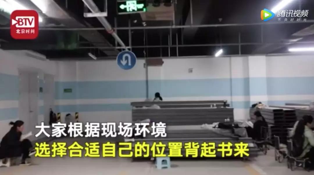 “車庫空間大,如果在教室背書會不方便,也會打擾別人,所以選擇來車庫。”——河師大學生