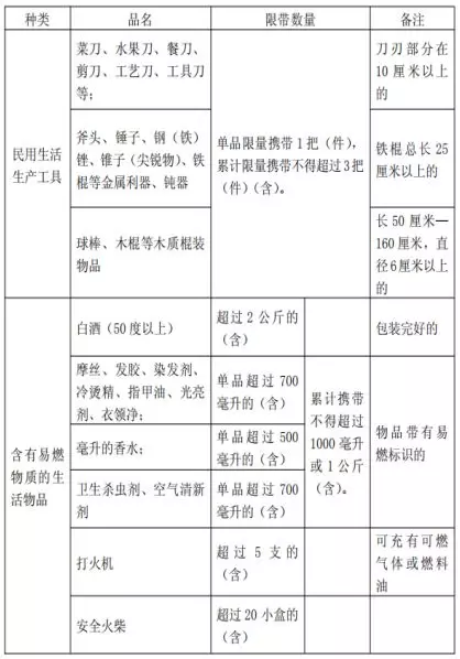 春運禁帶、限量物品: