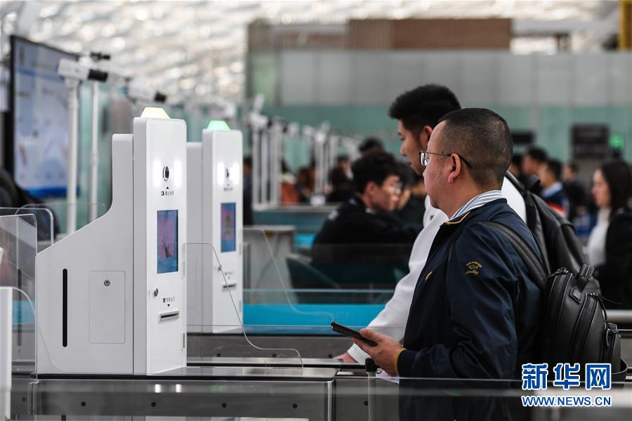 1月15日,旅客在深圳機場“刷臉”登機。目前,深圳機場所有登機口已設(shè)置了人臉識別設(shè)施。新華社記者毛思倩攝