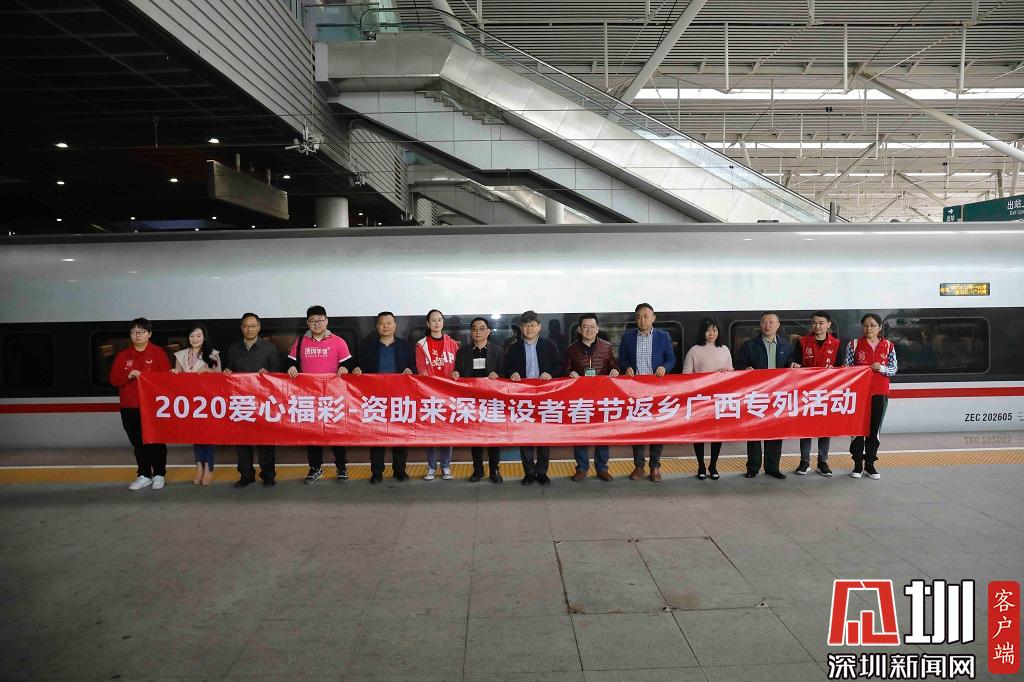 見(jiàn)圳客戶(hù)端·深圳新聞網(wǎng)2020年1月18日訊(見(jiàn)圳客戶(hù)端、深圳新聞網(wǎng)記者 楊浩翰)1月18日,“2020愛(ài)心福彩-資助來(lái)深建設(shè)者春節(jié)返鄉(xiāng)廣西專(zhuān)列”在深圳北站發(fā)車(chē)。今年是該活動(dòng)舉辦的第二屆,2300多名在深建設(shè)者通過(guò)乘坐該專(zhuān)列返鄉(xiāng)。