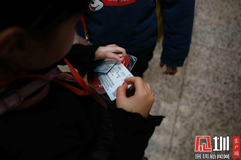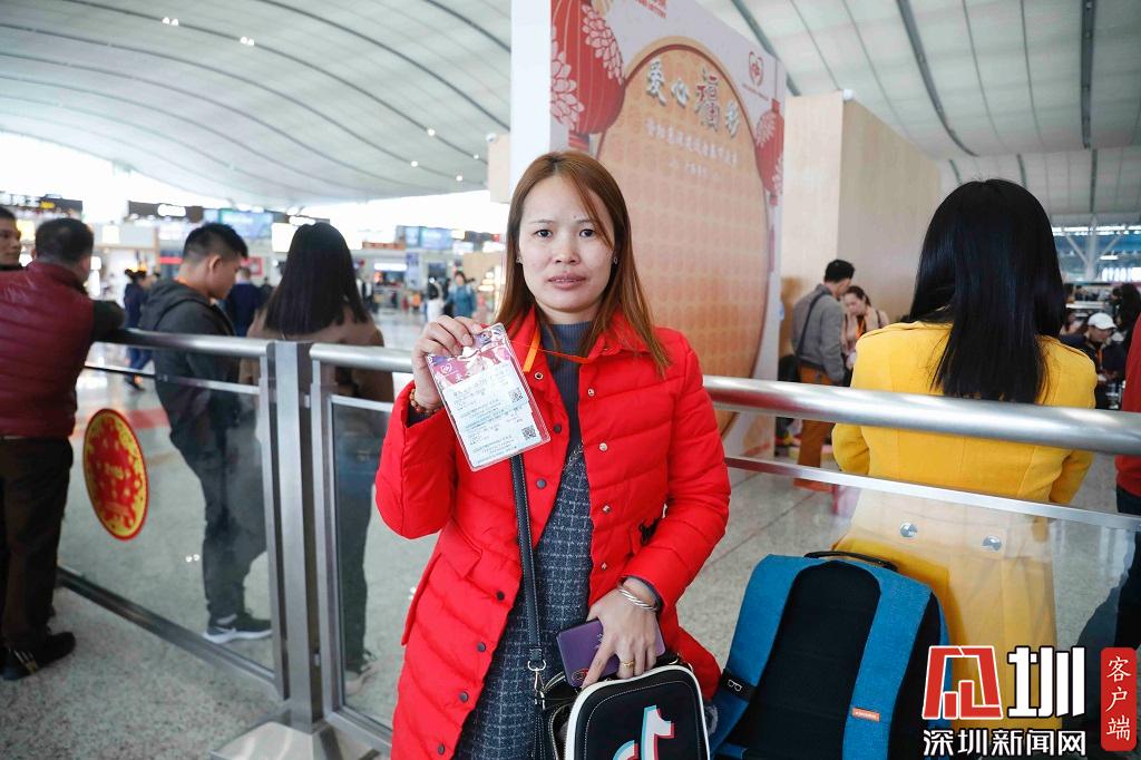 一位廣西來(lái)深建設(shè)者向鏡頭展示她的車(chē)票。