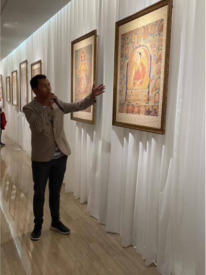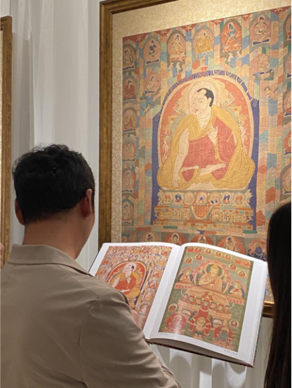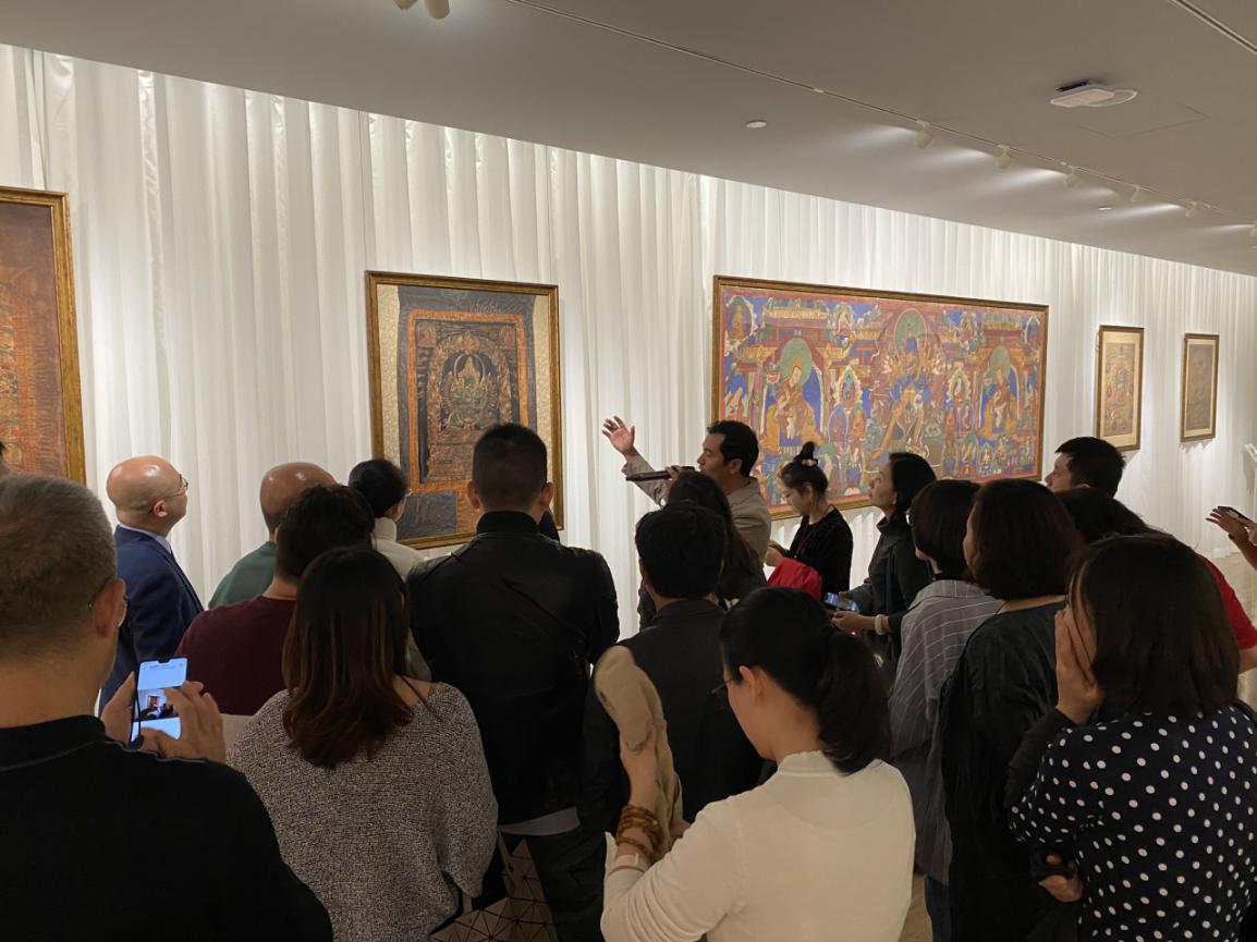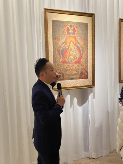 為了讓觀眾更好地了解本次展出唐卡的工藝美及其背后所蘊含的人文價值,桂心堂主人邀請了布達拉宮唐卡專家——次仁占堆老師、曾長期生活于蘇州的資深唐卡愛好者葉小龍,一同在1月4日的下午,給觀眾們帶來了一場深入淺出的導(dǎo)覽活動。