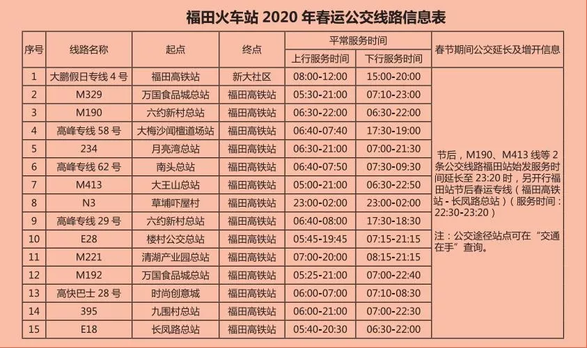 見圳客戶端·深圳新聞網(wǎng)2020年1月20日訊 又將迎來離深高峰,為方便大伙趕高鐵火車,深圳的公交地鐵都開啟最強(qiáng)加班模式,延長服務(wù)時間。很多小伙伴就很關(guān)心,途經(jīng)各大火車站的公交線有哪些?運(yùn)營的時間是幾點?