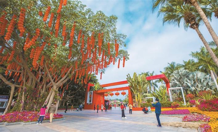 為給鵬城佳節(jié)增光添彩,蓮花山公園、深圳灣公園、園博園等22家市屬開放公園齊齊扮靚,“千園之城”換新顏。蓮花山公園,作為深圳的“城市會客廳”,是市民春節(jié)游園的好去處。公園里裝飾了5000串小燈籠與2400個(gè)大燈籠,處處一派喜慶祥和。在深圳灣公園流花山,約1.2萬平方米馬鞭草花海和4600平方米的醉蝶花花海正同時(shí)盛放,為節(jié)日帶來了濃濃的“浪漫”氛圍。園博園南門廣場,布置了約4000平方米的“園舞曲”大型花景,同時(shí)結(jié)合立體花墻,營造出熱烈的節(jié)日氛圍。特別值得關(guān)注的是,1月22日至2月8日人民公園將舉辦2020深圳月季花展,以“浪漫永恒”為主題,展出300多個(gè)月季品種,4個(gè)主題花園,布展面積約4萬平方米。