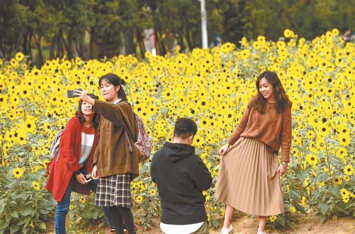 市民中心南廣場向日葵花海成了市民打卡地。