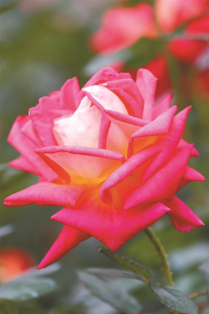 人民公園月季花展吸引眾多市民賞花。