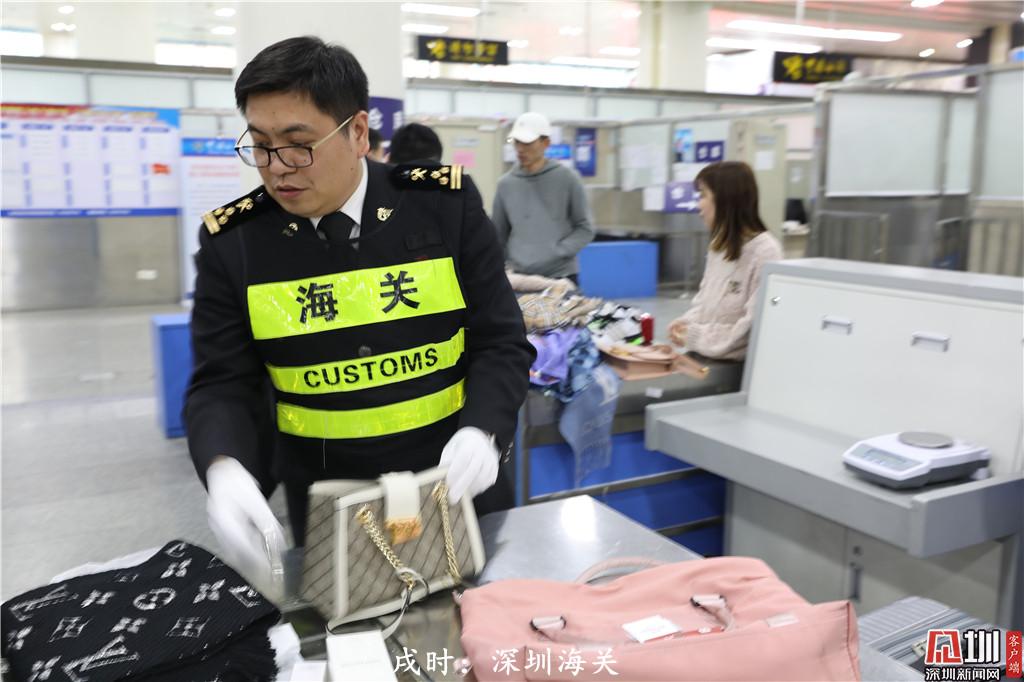 20時(shí)許,深圳海關(guān)的旅檢關(guān)員凌宗輝仍忙碌著,細(xì)心地檢查過(guò)關(guān)旅客是否攜帶違規(guī)物品。