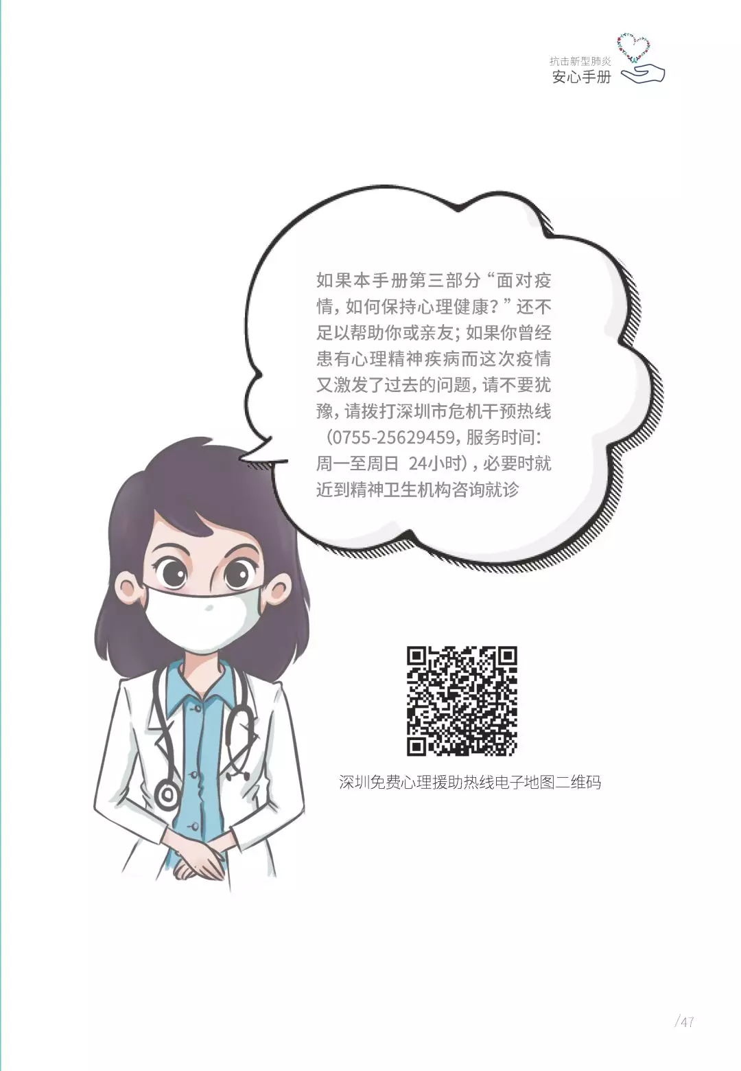 抗擊新型肺炎“安心手冊(cè)”由深圳市精神衛(wèi)生中心/深圳市康寧醫(yī)院支持,深圳市康寧醫(yī)院始建于1980年,是深圳市唯一一家集預(yù)防、醫(yī)療、康復(fù)、科研、教學(xué)于一體的公立三甲精神病專(zhuān)科醫(yī)院。2010年以來(lái),醫(yī)院連續(xù)九年名列復(fù)旦大學(xué)醫(yī)院管理研究所中國(guó)最佳專(zhuān)科排行榜精神專(zhuān)科醫(yī)院前十位;2017年榮膺第五屆全國(guó)文明單位;2019年精神科獲評(píng)廣東省高水平臨床重點(diǎn)專(zhuān)科。醫(yī)院服務(wù)在各類(lèi)顧客體驗(yàn)度和公眾滿(mǎn)意度測(cè)評(píng)中,名列前茅。