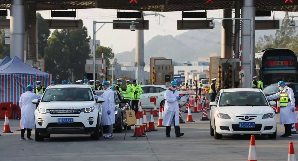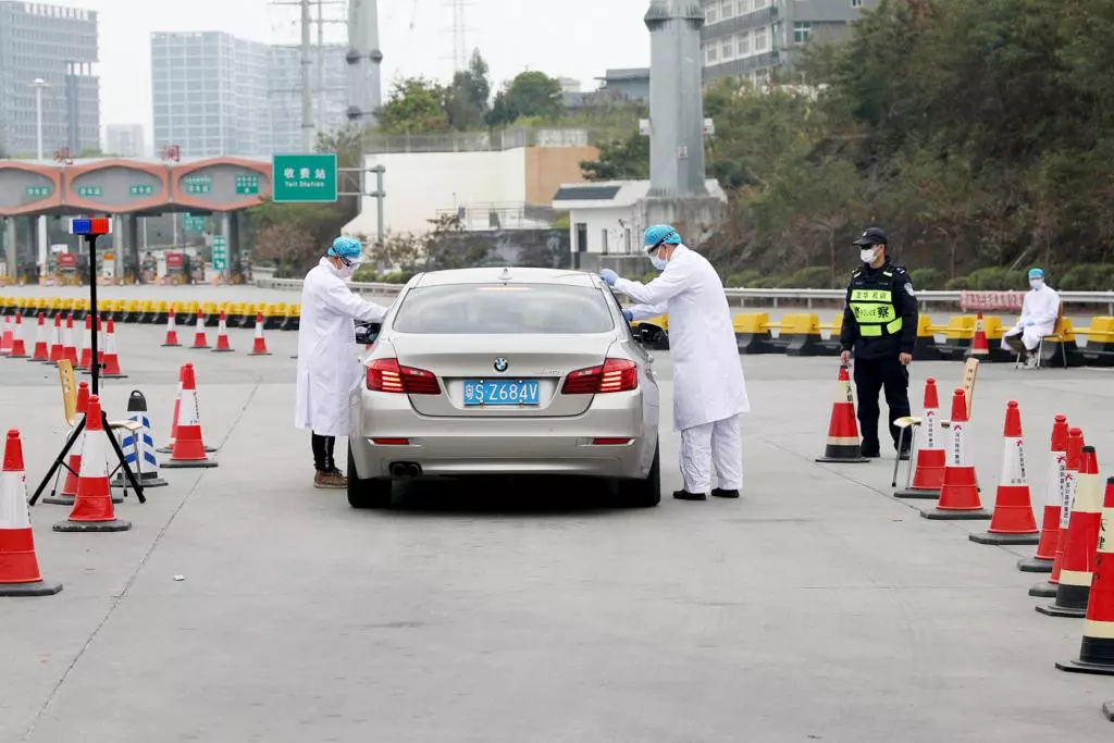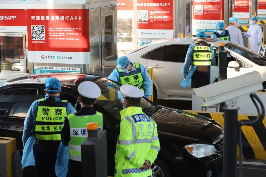 2月2日中午,深晚記者來到梅觀高速觀瀾收費站,發(fā)現(xiàn)這里開通了4條車道供車輛通行,現(xiàn)場有超過20名民警、醫(yī)務人員檢測入深車輛司乘人員的體溫。