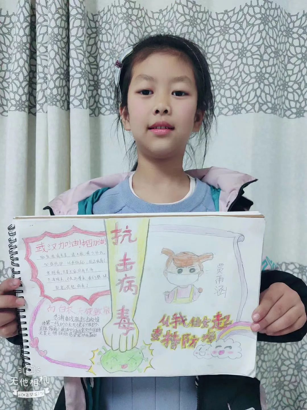我知道了,爸爸。你出門,是要讓更多的人安心呆在家里,不給社會添亂。這么說來,我的爸爸就像保衛(wèi)城市的騎士,每天都在英勇地戰(zhàn)斗?!笔∏G州市泗場中心小學賈雨涵