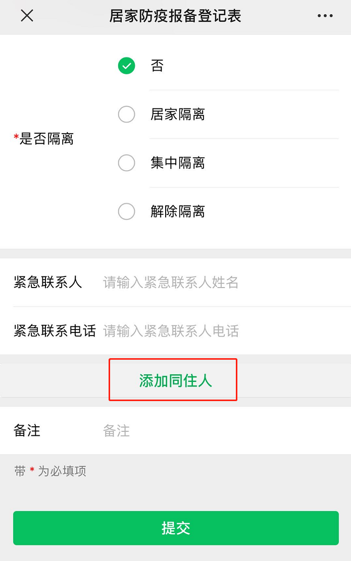 答:隔離情況按所在小區(qū)或自家實(shí)際隔離情況填寫。