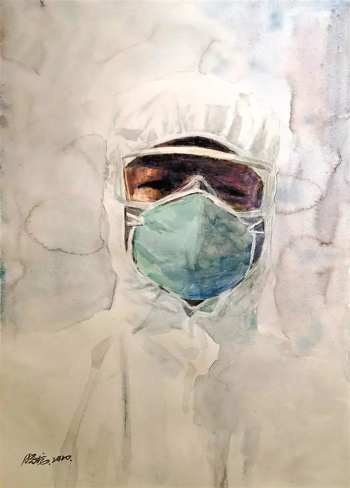 魯文詠在詩歌《最美的人,你看不見臉》中寫道:“最美的人,你看不見他們的臉。他們的臉被口罩遮著,被護目鏡遮著,被防護服遮著,有時,也被夜色遮著。他們在人群里穿行,在焦灼的企望的目光里穿行。他們來了,他們穿過,焦躁的人群就安靜下來。最美的人,你看不見他們的臉,看不見年齡,甚至性別。是的,天使不計年齡,天使不分性別?!?/p>
