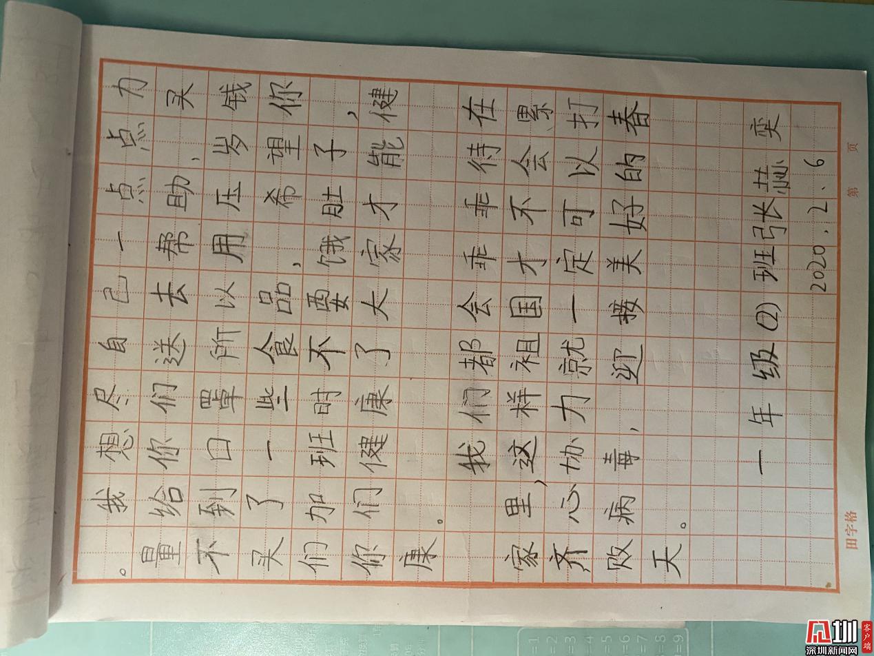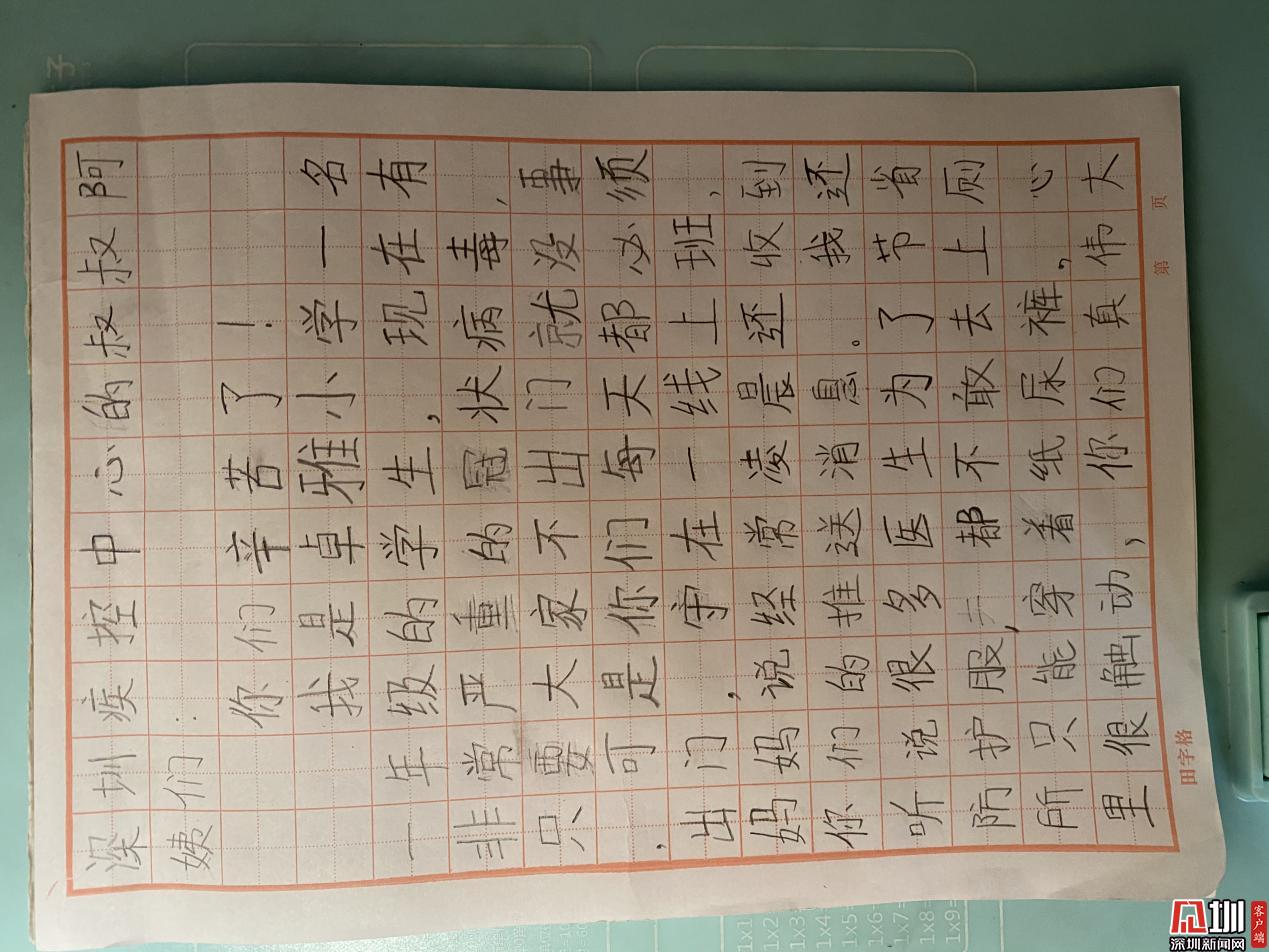張赫奕小朋友寫給深圳疾控叔叔阿姨們的慰問信