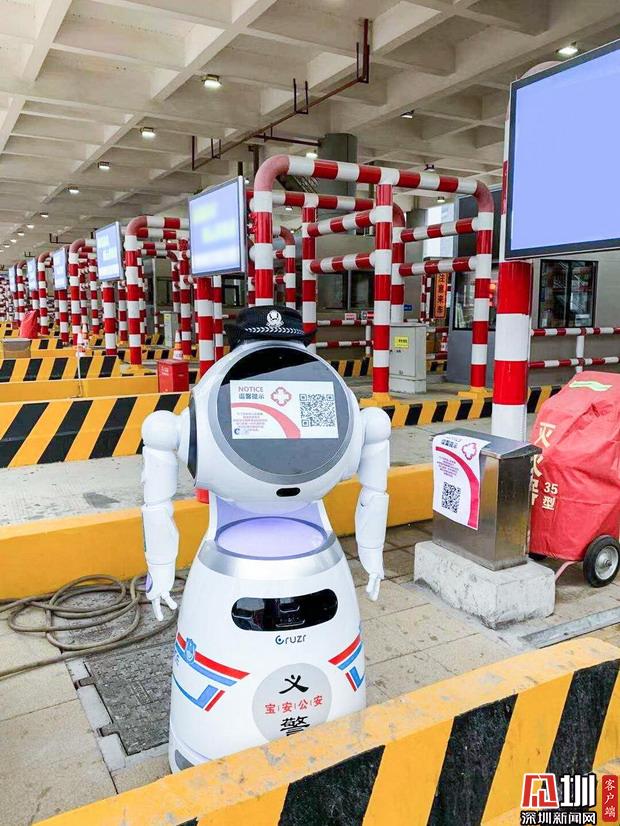5G機(jī)器人義警“黃田田”提醒回深車輛掃碼登記。