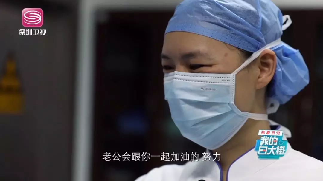 袁曉珊和黃茗勇相處的時間不到十分鐘。離開前,黃茗勇對袁曉珊說,“你們也是日夜奮戰(zhàn)在疫情的最前線當(dāng)中,你們也很危險,希望你能自己保重自己的身體,老公會跟你一起加的,努力!”聽到這番話,袁曉珊點(diǎn)點(diǎn)頭,眼睛眨了眨,透過口罩輕聲說了句“嗯”。