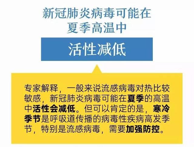 答:就流行病學觀察,冬、春季是流感等呼吸道傳染病的高發(fā)期,2002-2003年非典以及如今的新冠肺炎均起始于寒冷季節(jié)!這種現象可能與低溫有利于病毒在環(huán)境中存活有關;艷陽高照,其中的紫外線可能會加速環(huán)境中病毒的死亡。目前,新冠病毒的致病性與之有顯著不同,比如有隱性感染且有傳染性,環(huán)境因素的作用有多大,尚待進一步觀察。但是無論如何,控制疫情還需要所有人共同努力與配合,遵循科學的公共衛(wèi)生防護措施,及時阻斷疫情傳播途徑,盡早控制疫情。