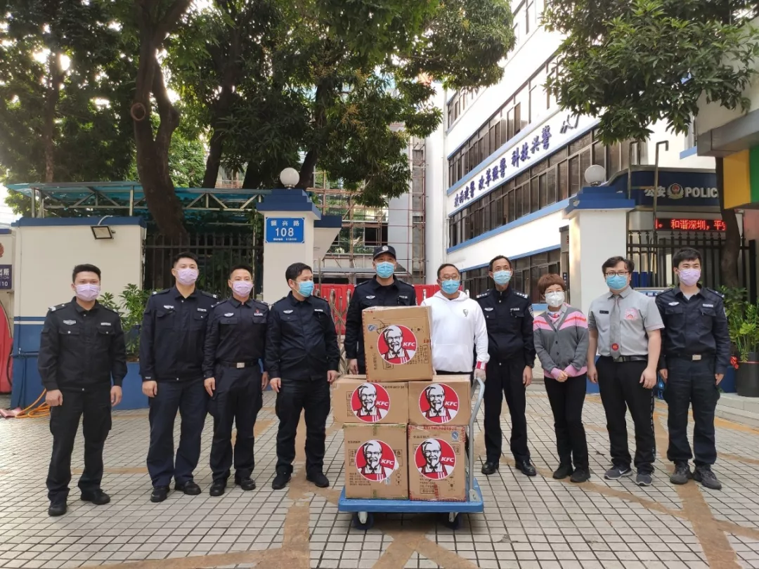 2月12日16時(shí)許,愛(ài)心餐飲企業(yè)經(jīng)理高先生攜店長(zhǎng)崔女士、鄭先生到深圳市公安局福田分局華強(qiáng)北派出所為在一線抗擊新冠肺炎疫情的公安民警和警務(wù)輔助人員送上60份熱騰騰的套餐。