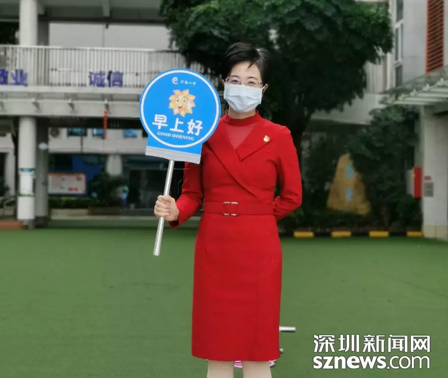 今日的“開(kāi)學(xué)典禮”雖不同往日,校園里空蕩蕩,沒(méi)有師生的到來(lái),但寶安區(qū)濱海小學(xué)的校園門口依舊出現(xiàn)了一個(gè)熟悉的身影,她用這種特殊的方式迎接孩子們開(kāi)學(xué)的第一天,“早上好”“你真棒”,這溫情的話語(yǔ)是李桃輝校長(zhǎng)給每一位師生的問(wèn)候。