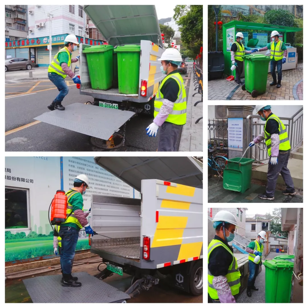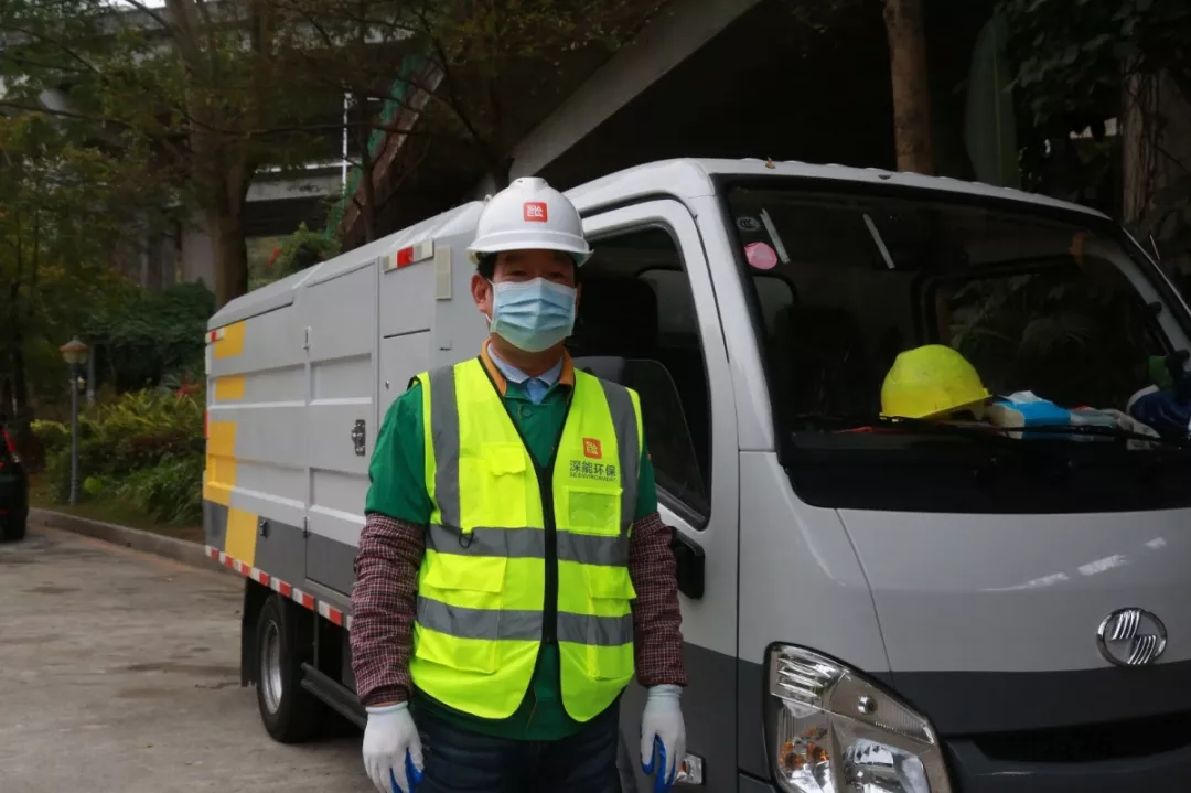上午7點(diǎn)半,第一個(gè)到崗的田夫珍開始測量體溫,消毒后穿上印有“深能環(huán)?!钡鸟R甲,戴上安全帽,檢查車輛消殺情況。8點(diǎn)整,他和14名同事一起出發(fā),分赴鹽田7條線路,開始和餐廚垃圾打交道。
