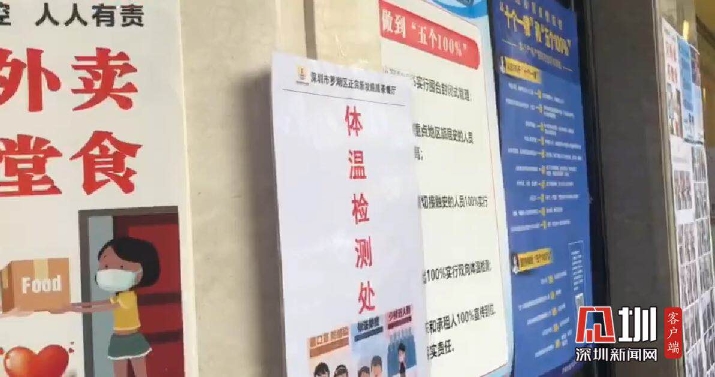 香港新發(fā)燒臘茶餐廳體溫檢測處及相關(guān)防疫宣傳欄。