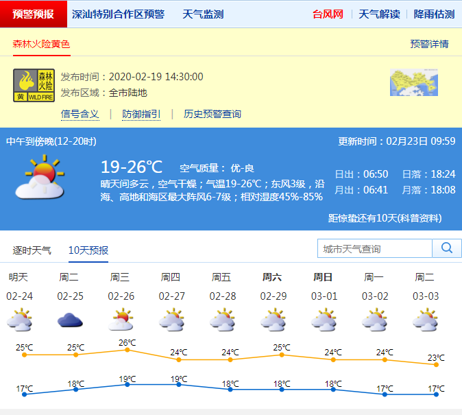 深圳今日最高溫26℃,森林火險黃色預(yù)警持續(xù)生效中