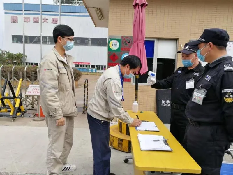 位于福城街道的大唐寶昌燃氣發(fā)電公司有序復工復產,員工進出園區(qū)測溫登記。