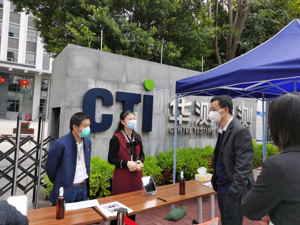 隨后,集團社康管理中心負責人和興東社康醫(yī)務人員到社區(qū)內(nèi)的重點企業(yè)——華測檢測認證集團股份有限公司,開展復工復產(chǎn)防疫工作,指導管理人員學習如何正確戴口罩、洗手、測體溫,口罩回收注意事項、如何避免登記人員信息時感染等等。