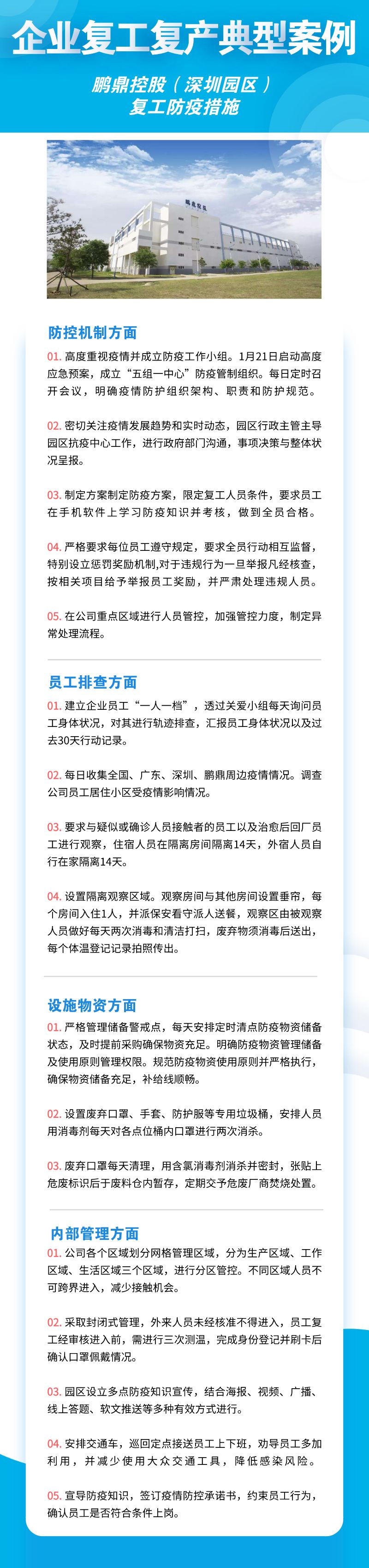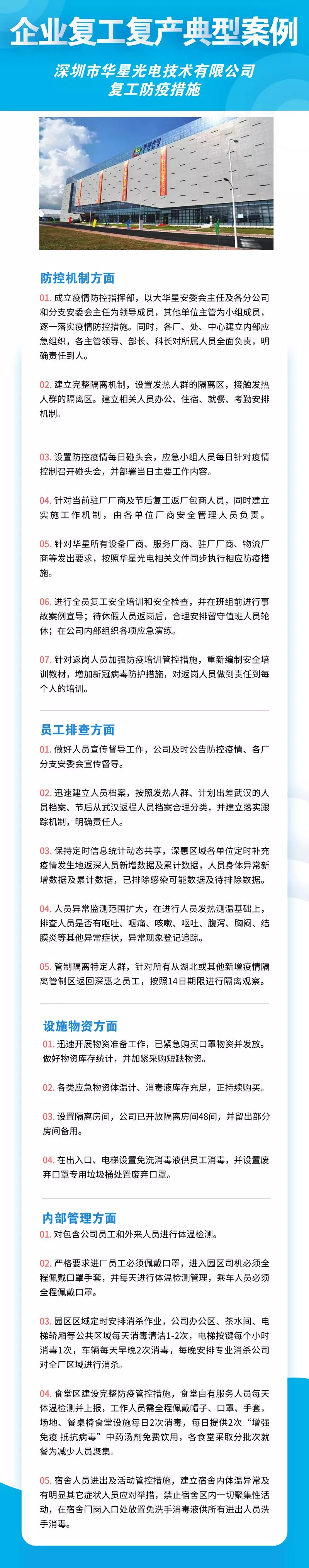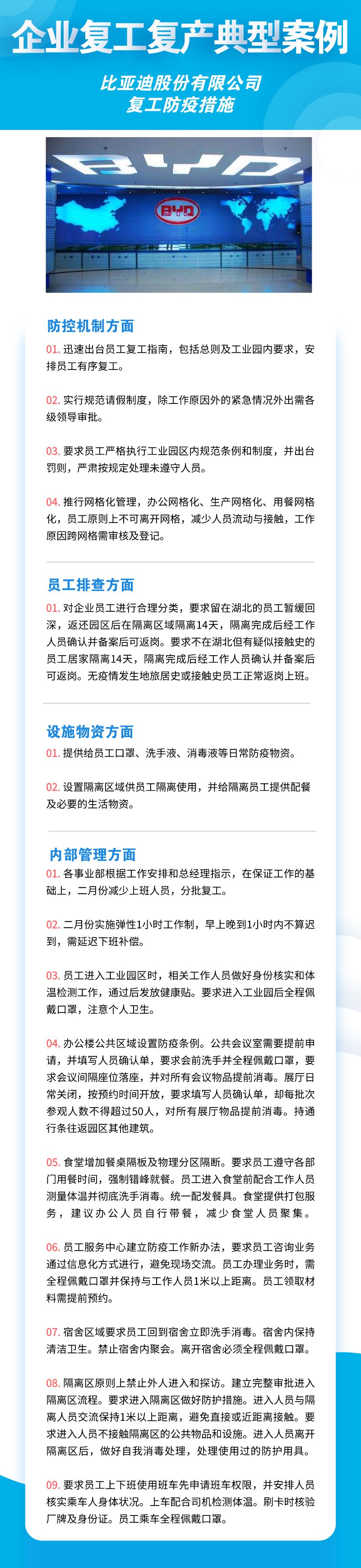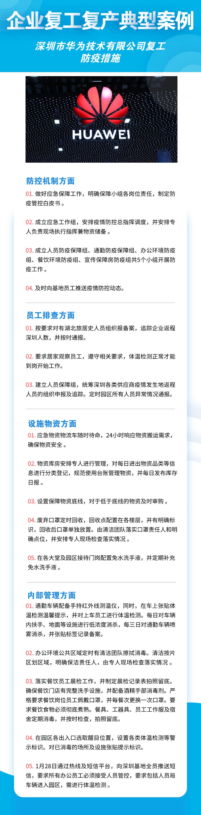 深圳市華為技術(shù)有限公司、聯(lián)想系統(tǒng)集成(深圳)有限公司、深南電路股份有限公司、比亞迪股份有限公司、創(chuàng)維集團(tuán)股份有限公司等8家公司,從防控機(jī)制、員工排查、設(shè)施物資、內(nèi)部管理四個方面來落實(shí)疫情防控措施,包括成立企業(yè)疫情防控小組、建立企業(yè)防控機(jī)制、提升員工防控意識、劃分隔離區(qū)域、宿舍食堂等區(qū)域消殺等舉措。