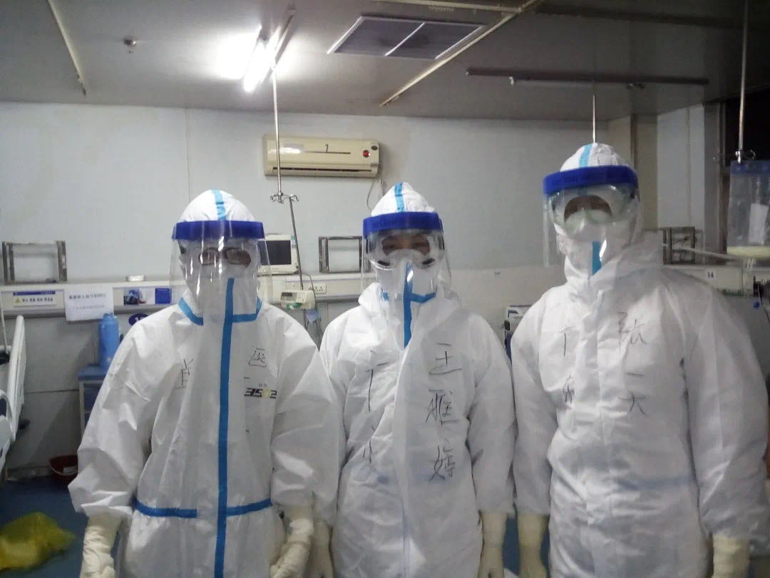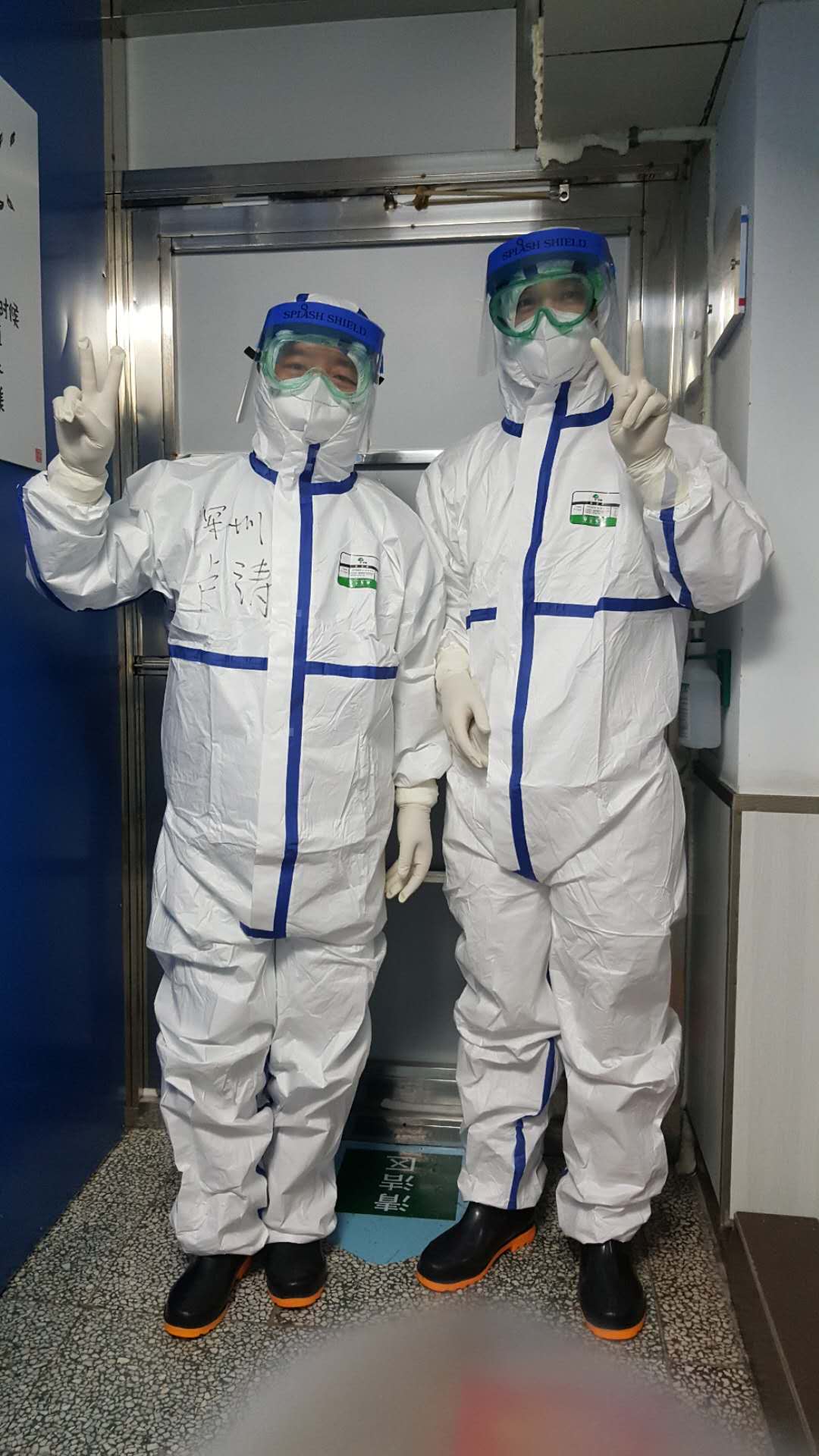 剛開始,我小心地保持著與患者的距離,一個(gè)、兩個(gè)、三個(gè)……隨著接觸的患者增加,我慢慢也放松了,開始進(jìn)入狀態(tài)。在病房?jī)?nèi),我詢問病人情況,解釋病情,提醒住院醫(yī)師做好查房記錄,探討用藥情況,傳達(dá)鐘南山院士的最新診療方案、第六版治療指南……終于找到支援隊(duì)專家的感覺了。憋氣、悶熱,似乎都來(lái)不及體會(huì),突然后背一涼,怎么有水滴下來(lái)了?難道是防護(hù)衣破了?心頭一緊,再仔細(xì)感覺,原來(lái)是汗水在里面流淌,虛驚一場(chǎng)。