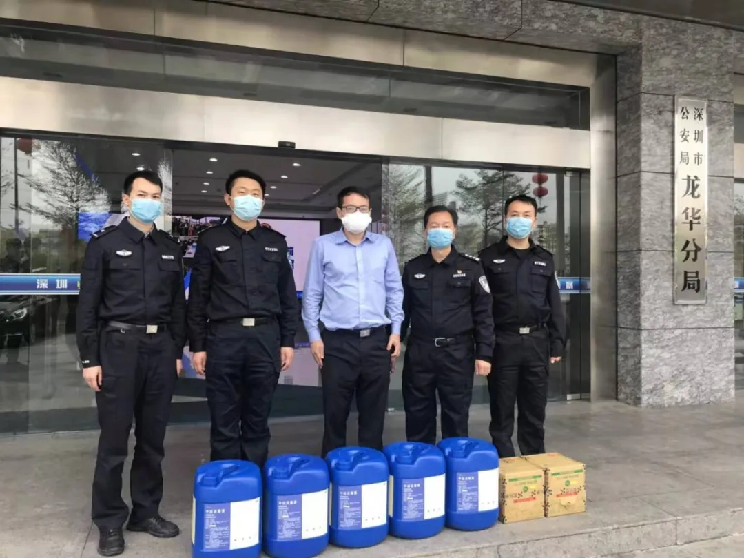 在疫情期間,這并不是他們第一次捐贈(zèng)。早在1月31日,慈善小團(tuán)隊(duì)就給龍華公安分局、龍華街道辦事處、龍華區(qū)網(wǎng)格辦等幾個(gè)部門(mén)送去了價(jià)值約8萬(wàn)元的消毒水。之后,又陸陸續(xù)續(xù)向深圳市公安局捐贈(zèng)12桶消毒原液,向龍華公安分局捐贈(zèng)了7桶消毒水,向社區(qū)捐贈(zèng)醫(yī)用口罩1000個(gè)、5桶消毒水、20瓶300毫升消毒水,向龍華區(qū)人民醫(yī)院捐贈(zèng)