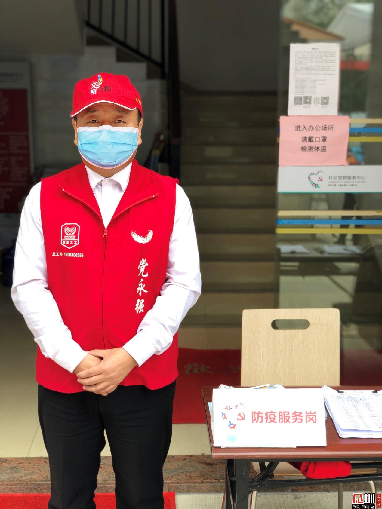 黨永強是一名退役軍人,同時也是嶺澳社區(qū)一名志愿者?!叭粲袘?zhàn),召必回!國家有難,我必須挺身而出?!睂τ谕宋檐娙藖碚f,從戎的經歷是值得用一生去驕傲的。44歲的黨永強把這份驕傲化作動力,防疫期參與志愿服務超1500小時。