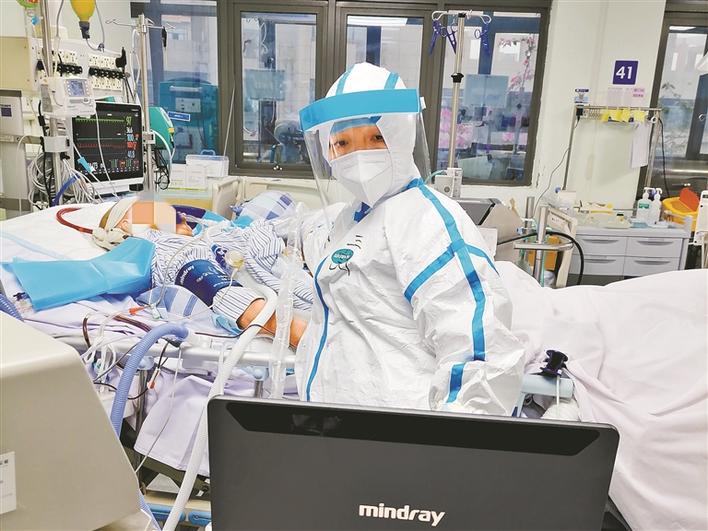 疫情早期,形勢嚴(yán)峻,隨著確診病人一批批收治,重癥病房很快進(jìn)入超負(fù)荷狀態(tài)?!白罡叻宓臅r(shí)候,我們接診了40多名患者,整個(gè)ICU病房都住滿了。重癥、危重癥患者有個(gè)特點(diǎn),就是病情變化特別快,一兩個(gè)小時(shí)病患的情況就差很遠(yuǎn),這就要求我們必須時(shí)刻嚴(yán)密監(jiān)測。因此,每次在班上,我都處于高度緊張的狀態(tài),不停地要去觀察分析各種數(shù)據(jù),要及時(shí)對(duì)患者治療進(jìn)行調(diào)整,加上穿著厚厚的防護(hù)服,處于缺氧狀態(tài),有時(shí)候確實(shí)感覺到蠻累的?!倍@樣超速運(yùn)轉(zhuǎn)的值班,一直持續(xù)了一個(gè)多月。