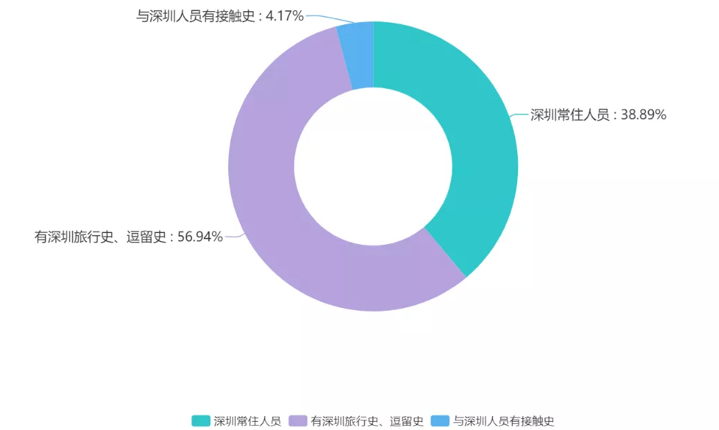 ▲深圳新冠肺炎確診病例存在聚集性特征的有223例,占總數(shù)的53.22%,超過(guò)半數(shù),可見對(duì)密切接觸者的隔離、排查是阻隔病毒傳播路徑的有效手段。