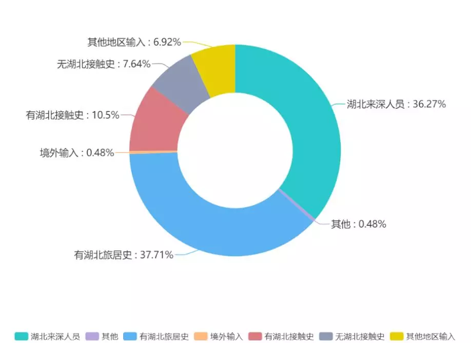 ▲所有輸入型病例中,近六成與湖北武漢有關(guān)聯(lián),湖北省其他城市也為重點(diǎn)來(lái)源地區(qū)??梢姡瑢?duì)湖北來(lái)深人員、有湖北旅居史人員的管控工作是防疫工作的重要一環(huán)。