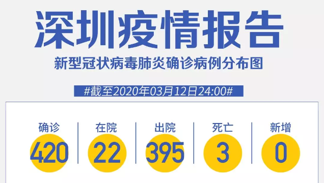 截至3月13日24時(shí),深圳累計(jì)報(bào)告“新冠肺炎”確診病例420例。3月13日當(dāng)天全市無(wú)新增確診病例,當(dāng)天出院病例1例。